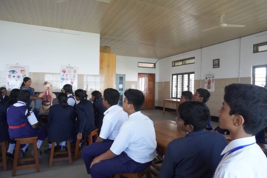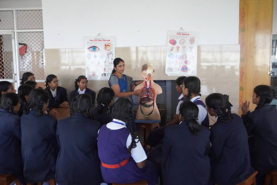 The school runs in two multistoried buildings seperately for kindergarten and I to X classes. Classrooms are spacious, well ventilated with digital boards.